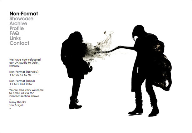 有相当一部分的极简主义设计为原则的网页是以Flash为蓝本的。适可而止的视觉造福于细节上的动画效果,例如是文本的渐出渐入的效果。同样,Flash的移动毫无疑问会成为设计的限制。突破常规的线框,排版等元素的变化将会比遵循传统套路的设计更容易用Flash做出你想要的效果。